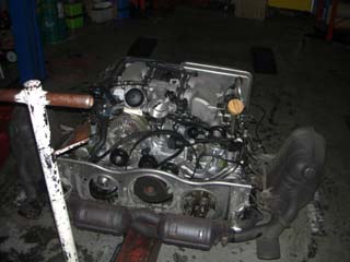 降ろされた水平対抗6気筒エンジンっす! まぁ〜、普段は見れないから、記念撮影です。(^^ゞ |