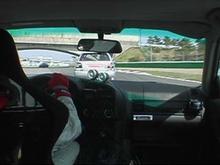 | 後方からゴルフの動きをチェック! 3コーナーから1ヘアまでは 私の方が速いみたい。 相手の弱点を盗みます。 |