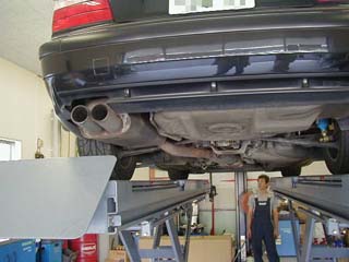 | 交換後の街乗りインプレ・・・。 Fパイプを装着したものの、マフラーにサブ・サイレンサーが付いてるせいか、 街乗りレベル(3000rpm以下)では五月蝿くありません。 高回転では、少々五月蝿くなった感じです。 エンジンのフケの方は、気のせいか高回転が回るかな?ってな印象です。 高回転を多用するサーキットを早く走ってみたいものです。 あ、少々排気ガスが臭くなりました。(爆 |