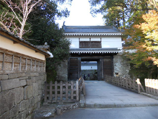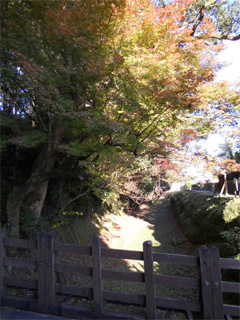 大手門横の堀は枯れてました。 昔は水があったのでしょうかね? 紅葉もなかなか綺麗です。 |