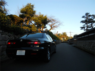 | 駆け足で回った飫肥城下の街並み。 帰路のついでにAlfa156(ろまお君)と 記念撮影です。 背景は、もちろん飫肥城大手門♪ |