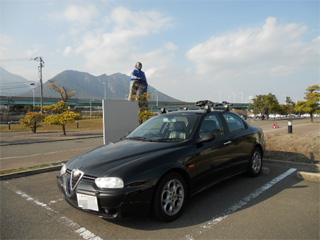 | 雲仙・普賢岳をバックに巨大な龍馬像! しかも青色。(^^;; なんで、サッカーボールなんだぁ?と思いながらも 記念撮影して帰りました。 PS. 近くの駐車場では、車好きっぽい連中が オフ会みたいなのをしてたなぁ〜。<長崎ナンバー AE86、Z31、ランエボ・・・etc、沢山♪(・o・) |