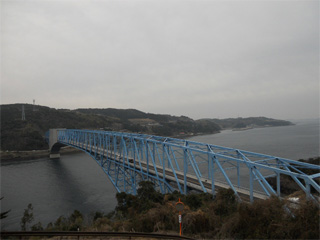 | 「道の駅 黒之瀬戸だんだん市場」の上に 建設されてた展望台より、 黒之瀬戸大橋を展望。 |