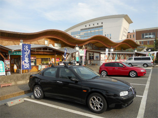 | 天草上島の真ん中くらい北側の 海岸線沿いにあります。 ご存知、リップルランド! アルファ147が駐車してたので、 隣に並べて・・・と思ったんですが、 オーナーさんが来たら嫌だなぁ〜と思い ちょっと離して停めました。(笑 |