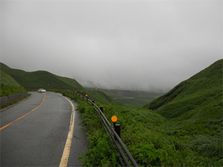 | 県道28号の通称グリーンロードというコース。 未知の世界でした。 初めて通ったんですが、結構展望良いんですね♪ 晴れてたら阿蘇平野まで見えそうです。 |
