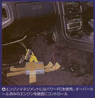 ガムテープでフルコンを固定してるとこが カッコ良いっ! 実はこの日は既にセッティングは終わってたん ですけどね。(^^ゞ |