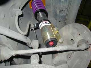 フロントの減衰力調整のダイヤルは下側にあります。 調整する時は、ジャッキを上げなくてもステアリングを 思い切って左右に切ると片側ずつ調整できます。(^^)v |