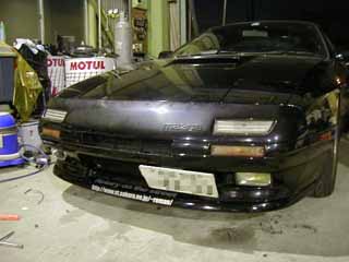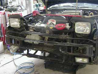 ゾンビ号のフロントバンパーを外した状態です。 インナーフォースメントに51cm程度の開口を明けました。 |