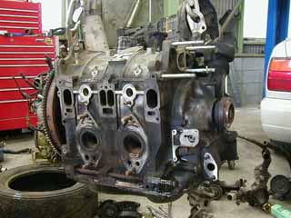 タービン、EXマニを取った状態のエンジン本体、