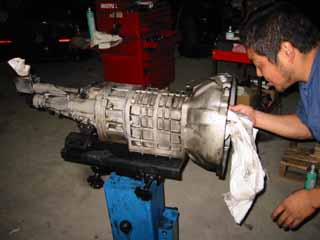 「パンチョ村田」さんがゾンビ号の 汚れたミッションを磨いてくれてます。 なんだか、目つきが怪しいです。(笑) |