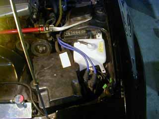 FC前期用のリザーバータンクを前期の 位置に取り付けます。 予算は純正PARTS代が4,130円也(税抜)。 3ヶ所止めなんですが、後期に流用する場合は、 1ヶ所しかボルトの穴が一致しません。 ゾンビ号の場合は、ステーと工具?を使って、 2ヶ所止めにしました。(^^ゞ 固定方法は内緒!(爆) |