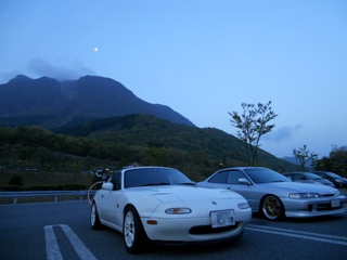 | AM3:00起床し、準備。 AM4:00に自宅を出発しました♪ 自宅を出て数百メートル地点。 パトカーに「キャリアの件」で止められ、 コンビニ駐車場で少々立ち話。 予定外のロスタイムでした。(爆 AM4:30に山田SAではまけんsanと待ち合わせ。 会場の住吉浜へ一緒に向かいました♪ 写真は、由布岳PAで、はまけんsanのウ○コtimeの 為の休憩中です。(笑 バックは由布岳!v(*'-^*)bぶいっ♪ |
