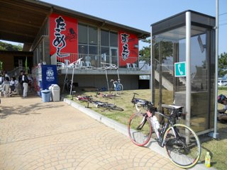 | 道の駅 くにみ エイドポイントでもないのに、集団についていってたら ココに導かれました。(爆 アクエリアスを自販機で購入し、5分くらい休んだかな?(^^;; |