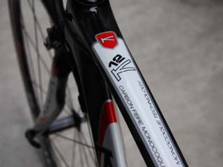 トップチューブを上から見た写真。 「CARBON・・・なんちゃら」 |