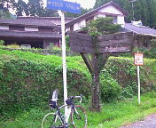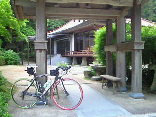 コンクリート道路の悪路&急勾配を 突き進むと万歳寺に到着! 上の分岐部の地点から300m。 記念に撮影♪ |