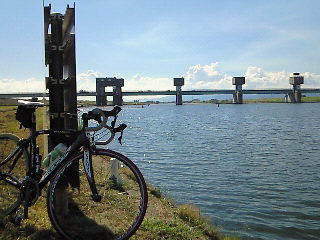 | 筑後川をさらに上流へ。 筑後川堰です。 まだ日差しも雲も”夏”ってました。(笑 |