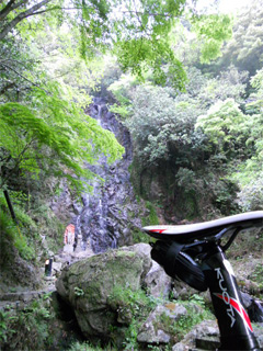 写真にぼやけてるとこがあるのは、 滝の水しぶきじゃありません。 雨粒なんです。 この時、既にオイラはびしょ濡れ状態。(爆 真夏なら森林浴効果もあり、涼しいのでしょうけどね。 |