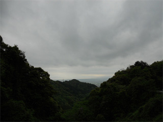 | 清水の滝から県道44号線をさらに上ってみます。 「龍水園ホテル」付近からの眺めです♪ 曇ってますねぇ〜・・・。 視界(眺望)もイマイチ。(-o-) |