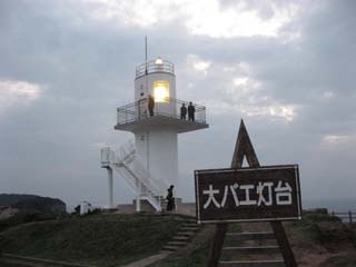 もちっと雲が少なかったらなぁ〜・・・。 灯台の上から眺める夕焼けの空です。 |