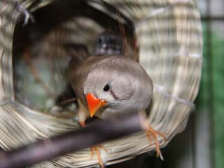 キンカチョウの雌って、雄に比べると 羽根の模様が地味ですね。 |